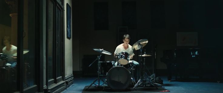 At the beginning of this film, before any dialogue. The first thing the audience hears is andrew drumming. The sound drives the scene, the beat of the drums starts off slow and progressively gets louder and more chaotic . the tight acoustics of the room give a dry and echo less tone that fits an empty conservatory space. The sound indicates rhythm and narrative; beginning clean and abrupt, slowly reaching climax and set tempo and before an end is reached we see and abrupt opening.